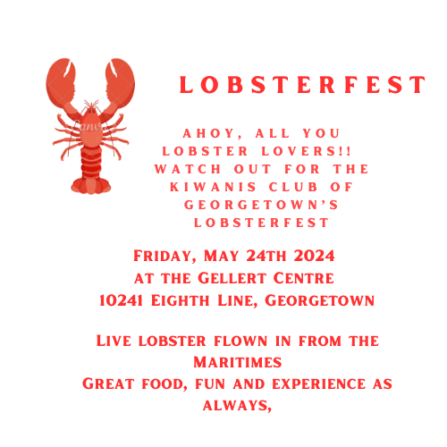 Ahoy Lobster and Steak lovers. Come on down to the Gellert Centre, 10241 Eighth Line Georgetown. On. L7G5G2 Friday May 24th 6pm.