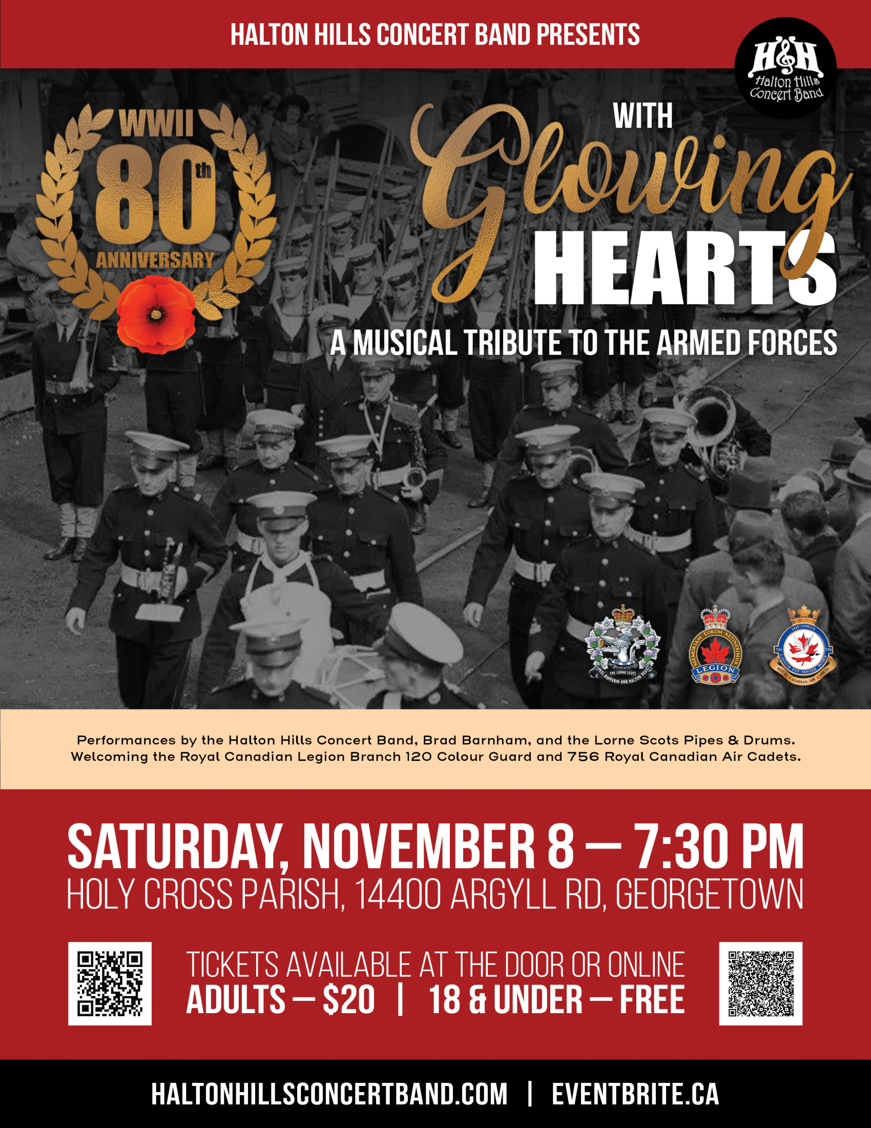 The Halton Hills Concert Band is excited to present its annual "With Glowing Hearts Musical Tribute to the Armed Forces" Sat., November 8, 7:30 at Holy Cross Parish, Georgetown.