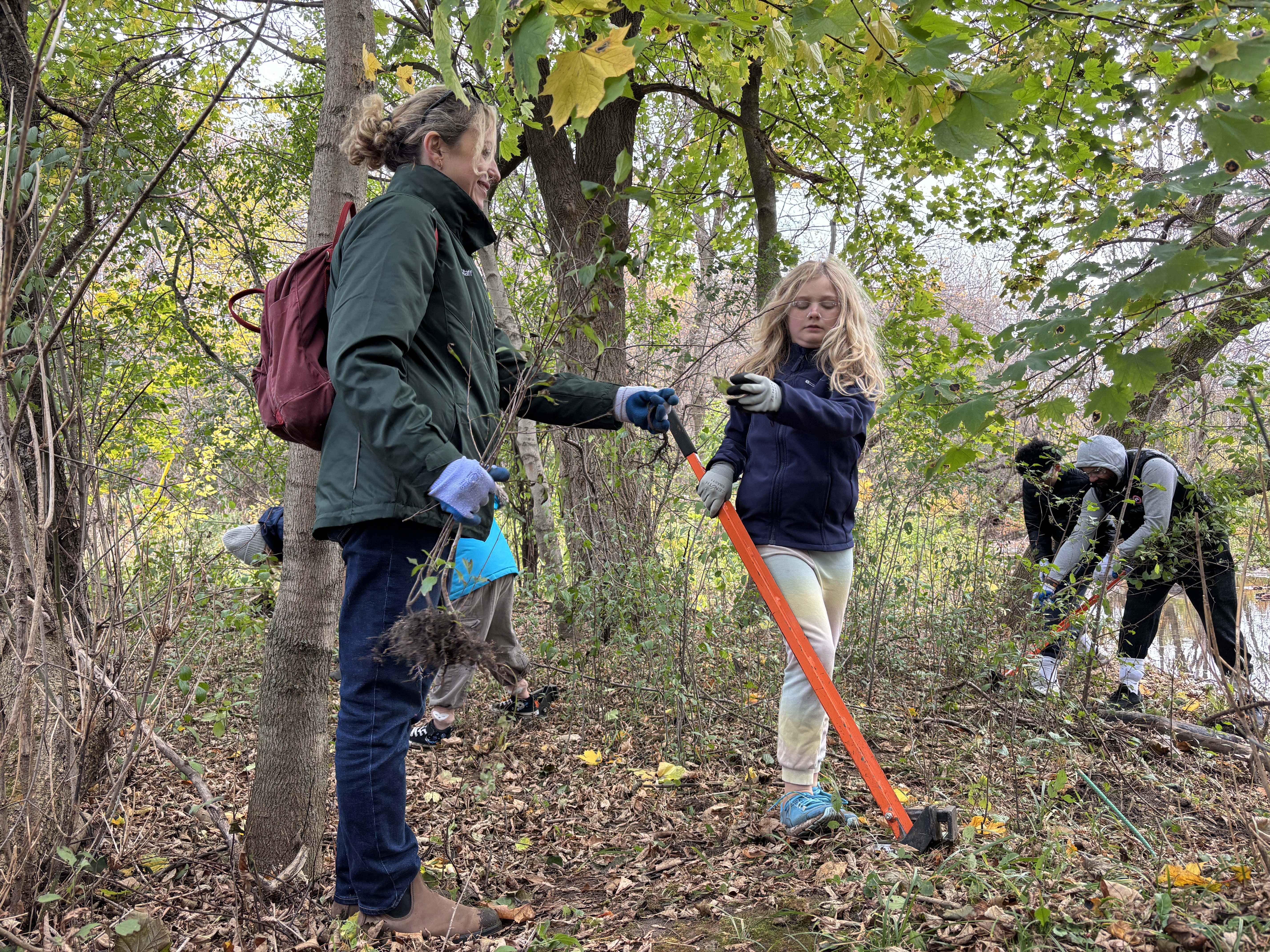 We will use tools such as shovels and extractigators to remove small and medium-sized invasive shrubs like buckthorn, honeysuckle.